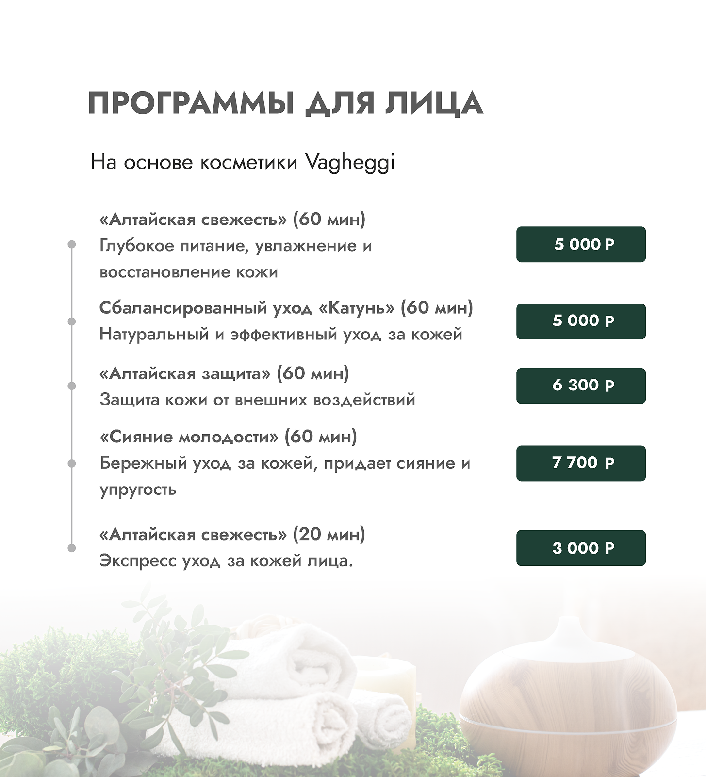 Мы сознательно выбрали в партнеры бренд VAGHEGGI PHYTOCOSMETICI — не просто поставщика косметики, а законодателя итальянской эстетической мысли с 1975 года.