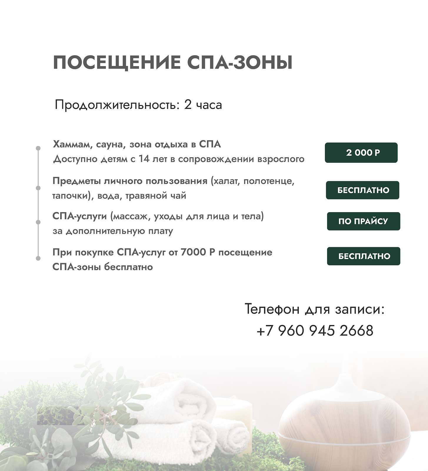 уникальная СПА-терапия— всё, чтобы забыть о ежедневных хлопотах и посвятить себя моменту